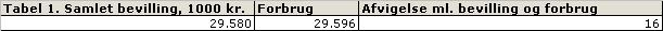 Tabel 1 viser forskellen mellem bevilling og forbrug: