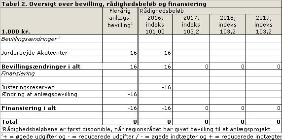 | at | merforbruget på 16.000 kr. for "jordarbejde Akutcenter - Kvalitetsfondsprojektet i Viborg" finansieres af projektets justeringsreserve jf. tabel 2. |