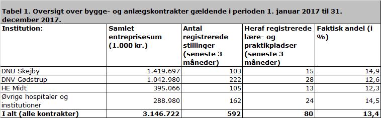 I perioden 1. januar 2017 til 31. december 2017 blev der i regionen indgået 20 nye kontrakter til en samlet kontraktsum på 341 mio. kr., som er omfattet af kravene om lære- og praktikpladser.