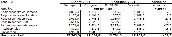 Det bemærkes, at Hospitalsenheden Vest skal flytte til Gødstrup i første kvartal af 2022, og der i den forbindelse må aflyses eller omvisiteres en del planlagt aktivitet. Dette forhold vil alt andet lige betyde, at den udsatte aktivitet (antal bookinger) vil stige i første kvartal 2022.