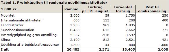 at opfølgningen pr. 31. august 2021 på aktiviteter og økonomi i forhold til projektpuljen under regionale udviklingsaktiviteter tages til efterretning,